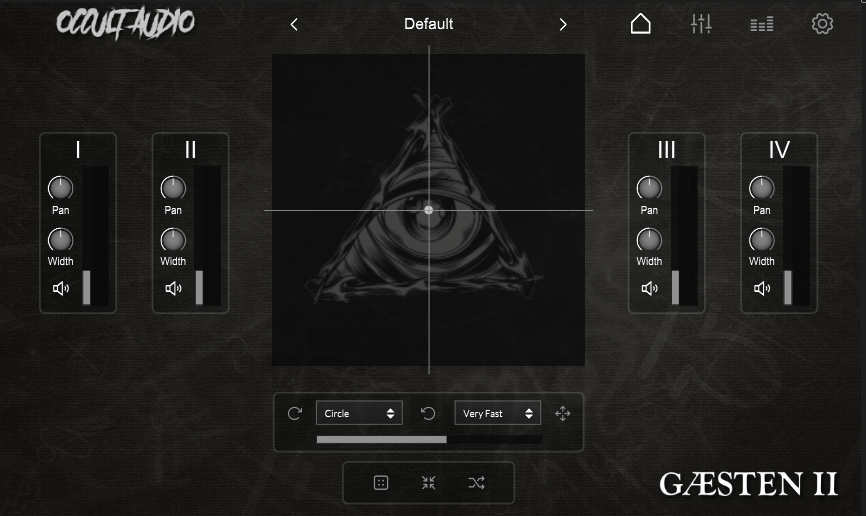 Movement can follow controlled square or circular paths, with adjustable speed and depth, or be pushed into unpredictable behaviour using the Random mode. A secondary, subtle drift function adds organic evolution — perfect for cues that need to feel alive without drawing attention to modulation.