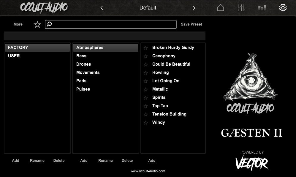 At the centre of GÆSTEN II lies the Vector Page — a dynamic XY environment where four samplers can be blended simultaneously.